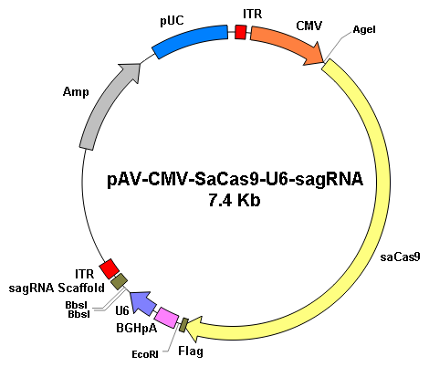 saCas9基因序列長約3.3kb,spCas9基因序列長約4.1kb,因為saCas9的基因序列要比spCas9的基因序列短很多,所以在克隆方面,saCas9要更為容易,且saCas9更適宜包裝成AAV病毒,當然兩者都可以包裝成腺病毒和慢病毒。saCas9和spCas9另外一個很大的區別是兩者識別的PAM序列不同,saCas9識別的PAM序列是5’-NNGRRT-3’,而spCas9識別的PAM序列為5’-NGG-3’,因為saCas9的PAM序列要比spCas9的PAM序列長,在基因組中出現的概率更低,相比于spCas9脫靶率要低,其gRNA設計也相對更困難。