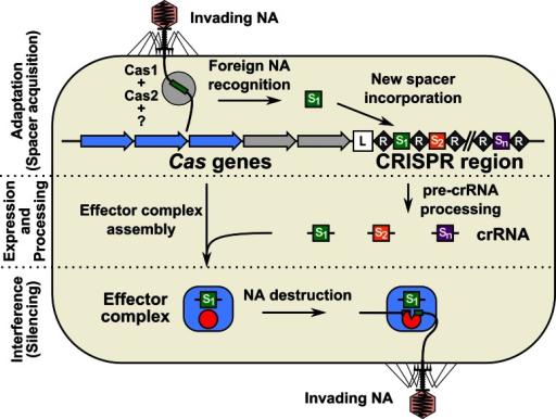 CRISPR/Cas(Clustered regularly interspaced short palindromic repeats and CRISPR associated)系統是細菌在噬菌體長期選擇壓力下,進化出的一種有效的獲得性免疫機制。