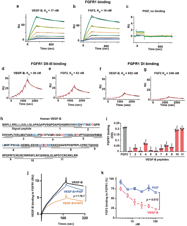 圖(tu)1. VEGF-B與(yu)FGFR1結合(he),并與(yu)FGF2競(jing)爭FGFR1結合(he)
