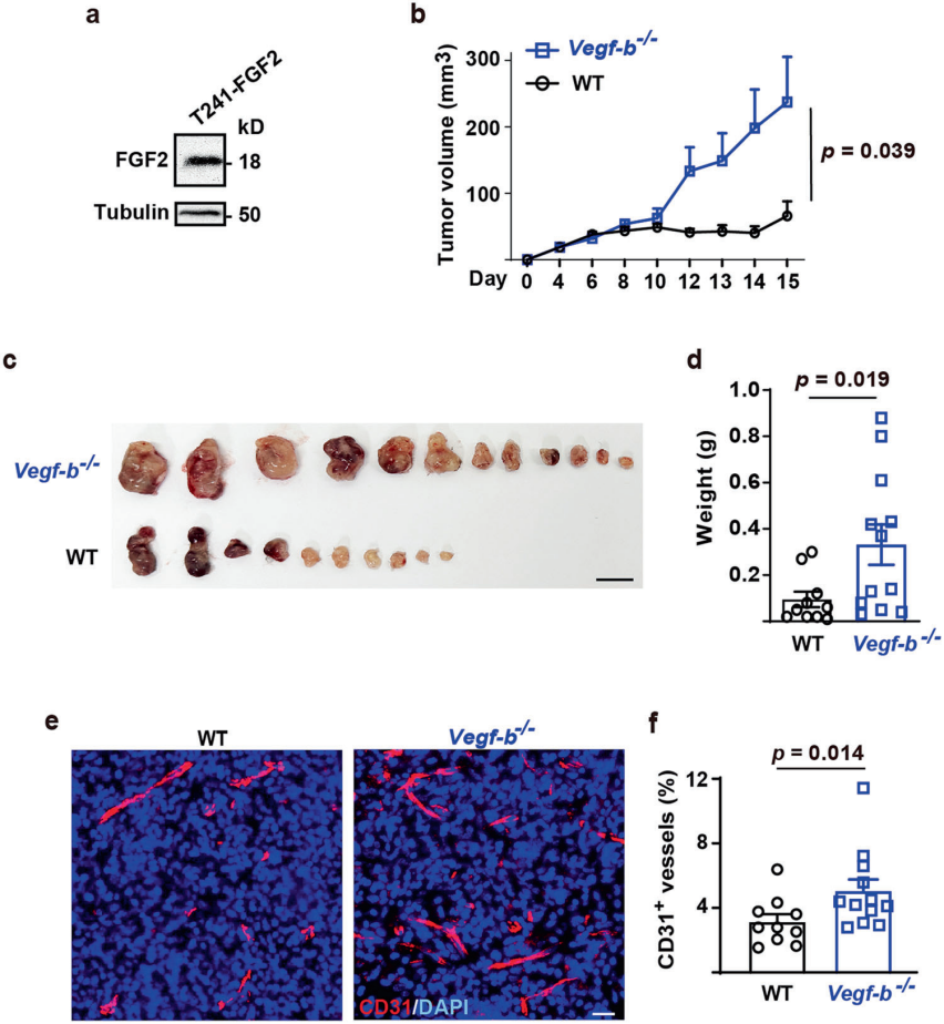 4、VEGF-B抑(yi)制(zhi)FGF2驅(qu)動(dong)的血管生成和腫瘤生長