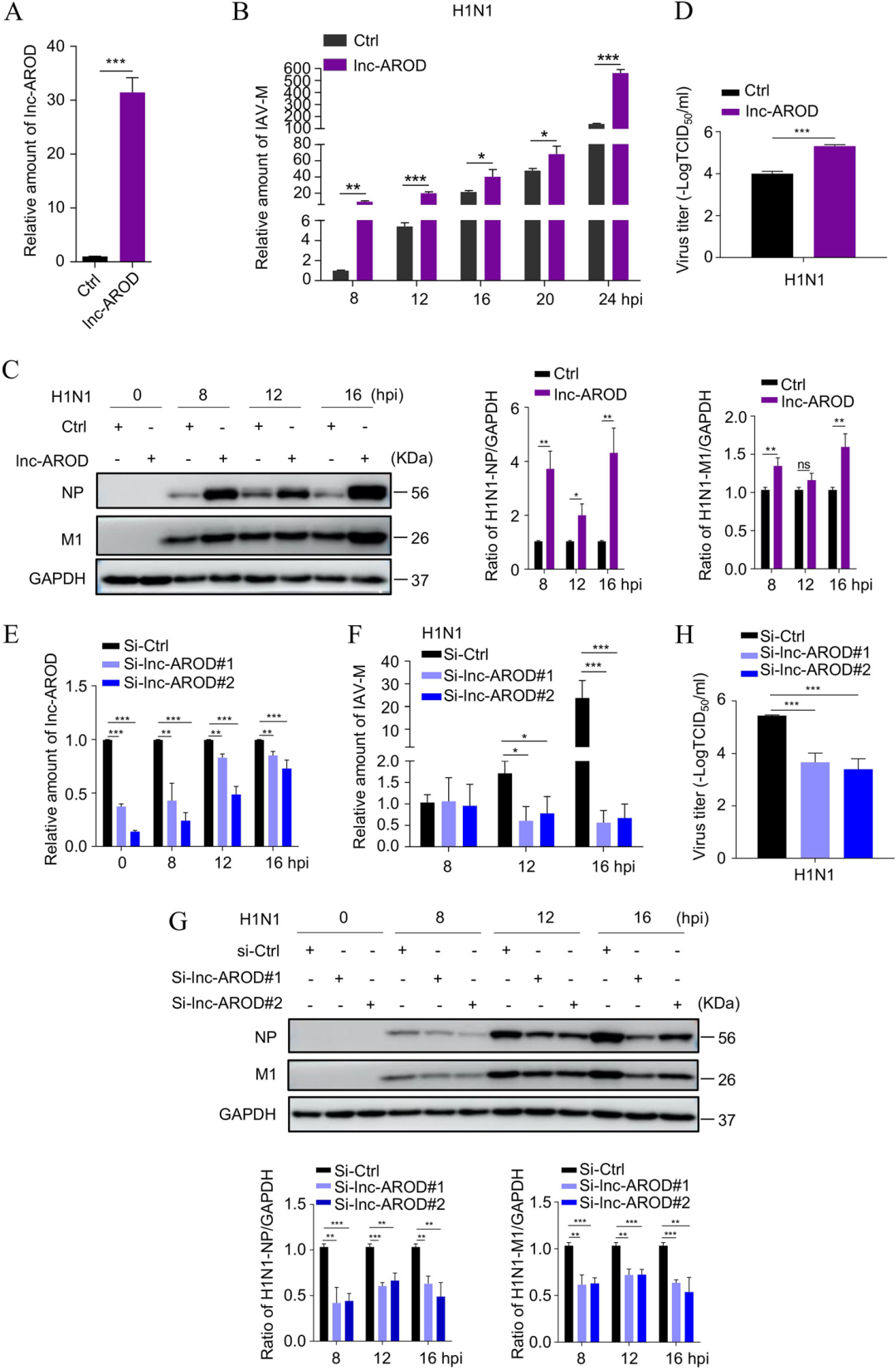 圖1. lnc-AROD促進IAV復制
