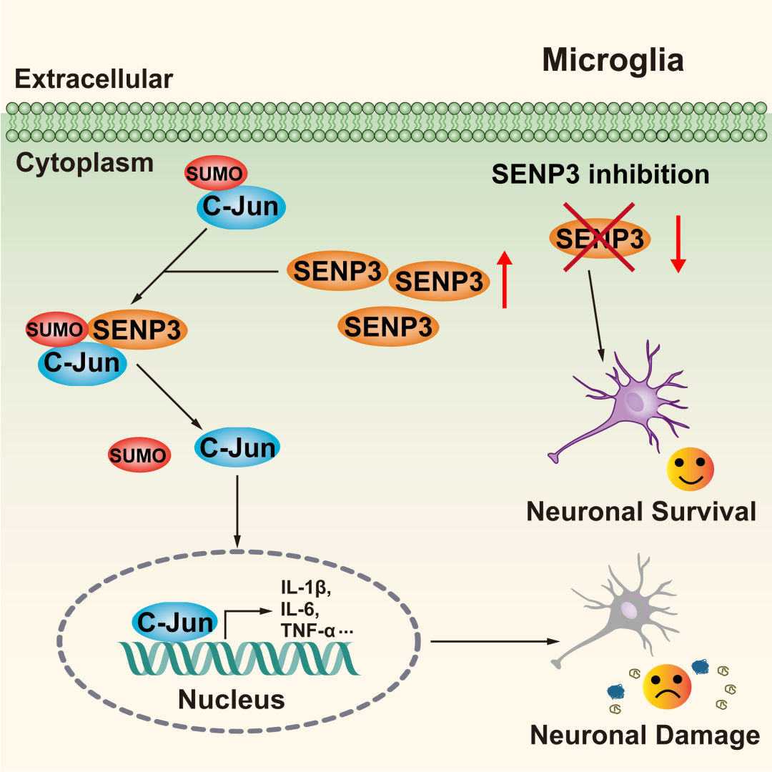 缺血性卒中是世界各地致殘和死亡的主要原因,尚缺乏特異性的治療靶點。越來越多的證據表明,過度激活的小膠質細胞誘導的神經炎癥是腦缺血再灌注(I/R)損傷后神經元凋亡和腦損傷的重要因素,因此開發抑制神經炎癥的新型藥物可能有助于缺血性腦損傷的治療。據報道,SUMO蛋白酶SENP3在腦缺血中具有損傷神經元作用,但其是否在缺血性卒中后小膠質細胞誘導的神經炎癥中起關鍵調節作用仍有待進一步研究。