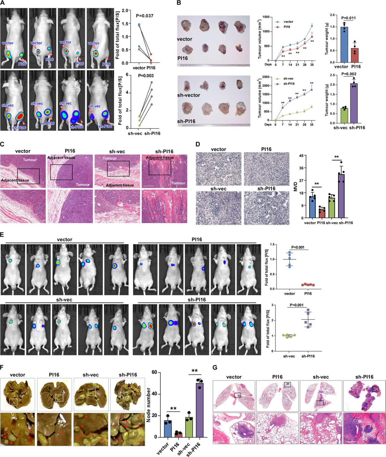 1、PI16在體內外抑制BLCA的致瘤性和轉移進展