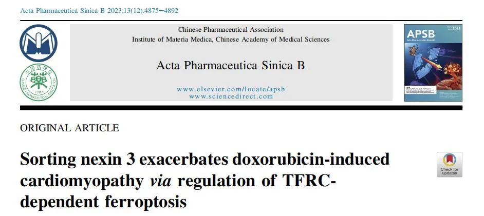 2023年8月,中山大學藥學院劉培慶/路靜研究團隊在Acta Pharmaceutica Sinica B(IF14.5)期刊發表題為“Sorting nexin 3 exacerbates doxorubicin-induced cardiomyopathy via regulation of TFRC-dependent ferroptosis”的研究論文。文章揭示了SNX3通過直接相互作用促進轉鐵蛋白受體TFRC的再循環,破壞鐵穩態,增加鐵積累,觸發鐵死亡,在dox誘導性心肌病中形成SNX3-TFRC-鐵死亡正調控軸,研究結果為dox誘導的心肌病提供了一種新的有效治療策略。