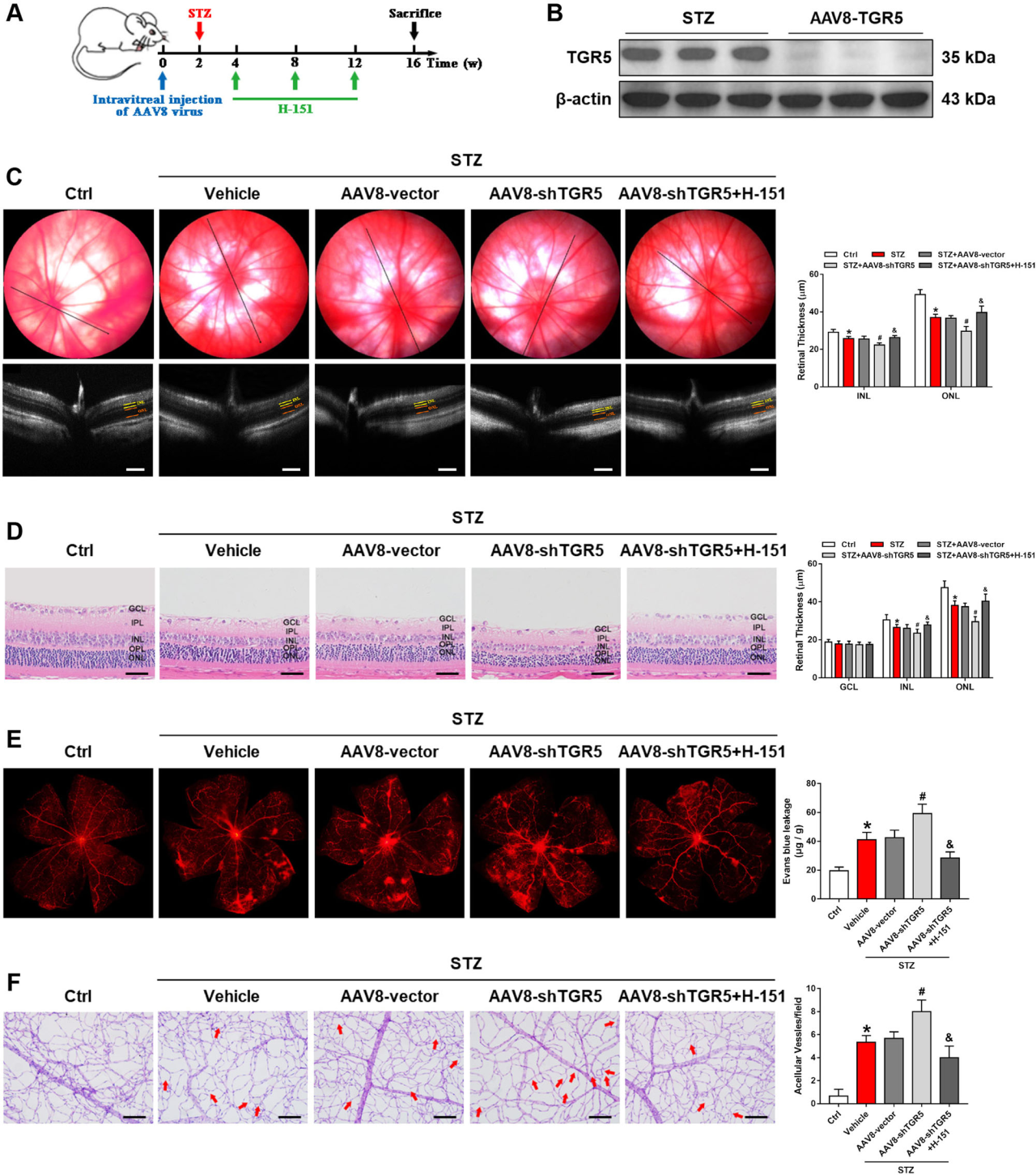 圖3. TGR5激活可阻斷cGAS-STING介導的炎癥反應,減輕DR大鼠視網膜損傷