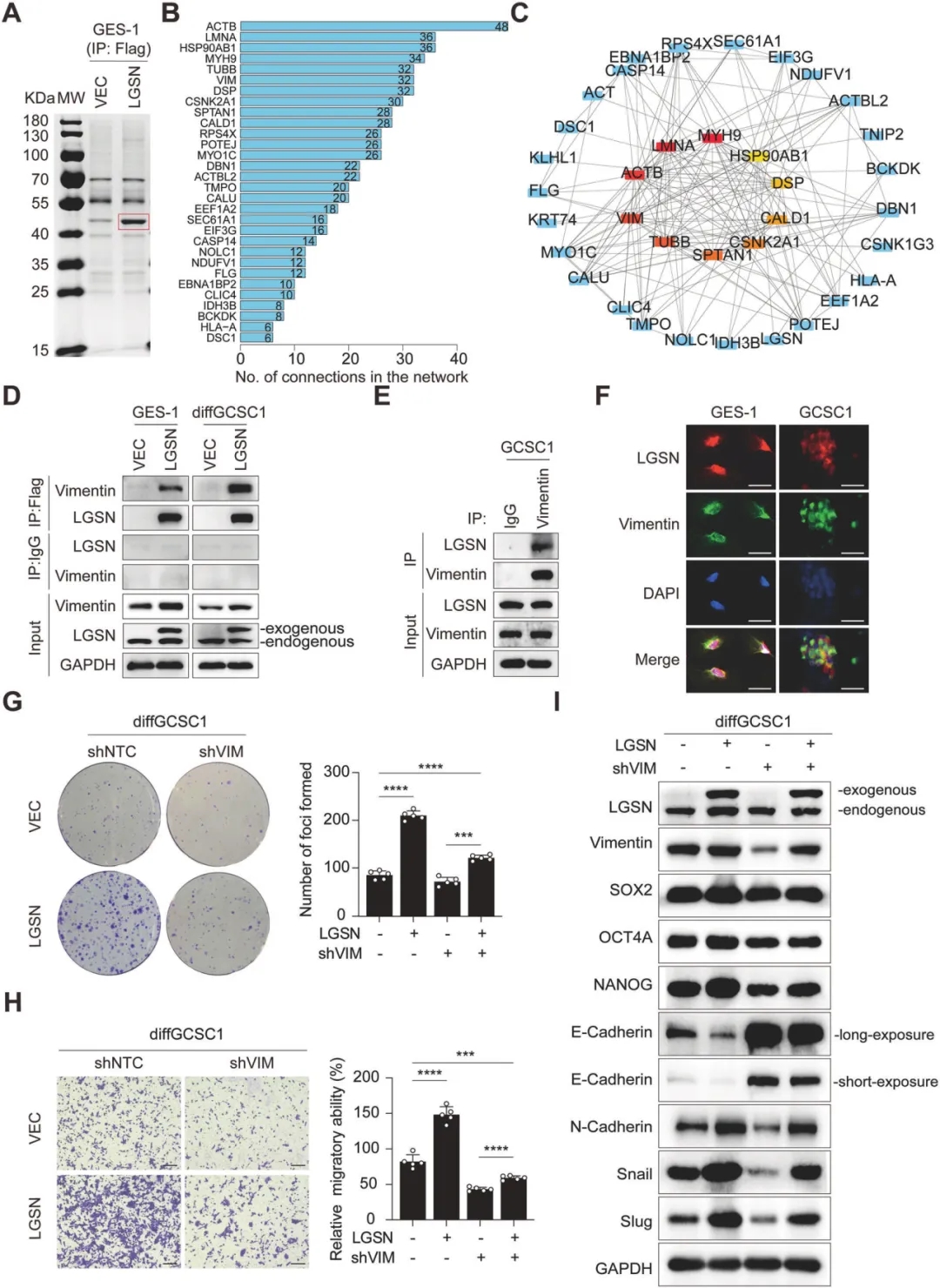 圖1. LGSN與vimentin相互作用,促進GCSCs的致瘤性和EMT