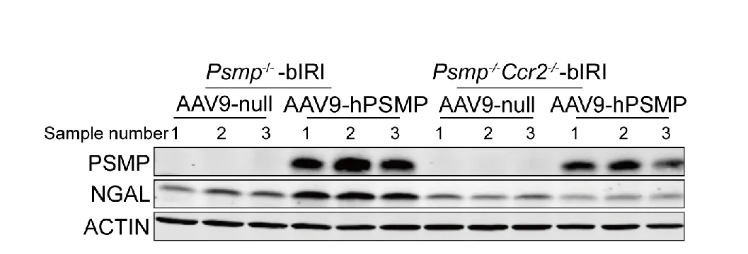 AAV9介導PSMP在Psmp-/-、Psmp-/- Ccr2-/-小鼠腎臟中的過表達