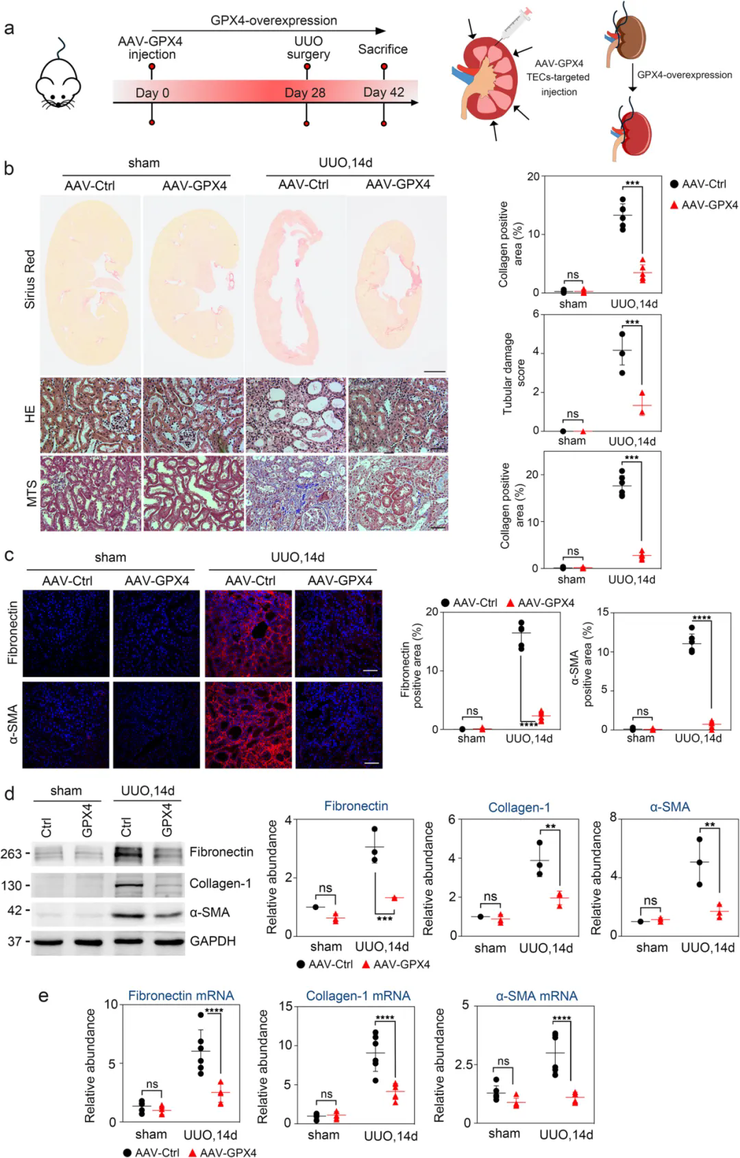 GPX4過表達的小鼠因鐵死亡缺陷而減輕UUO誘導的腎間質纖維化