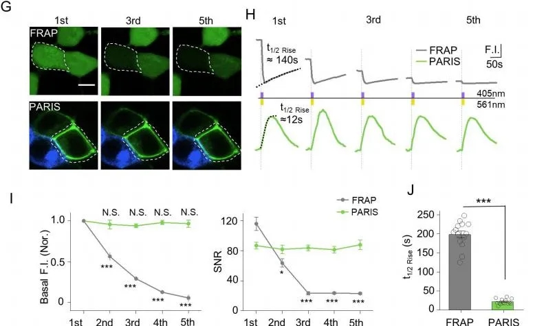 圖6. PARIS與FRAP在HEK293T細胞中的比較