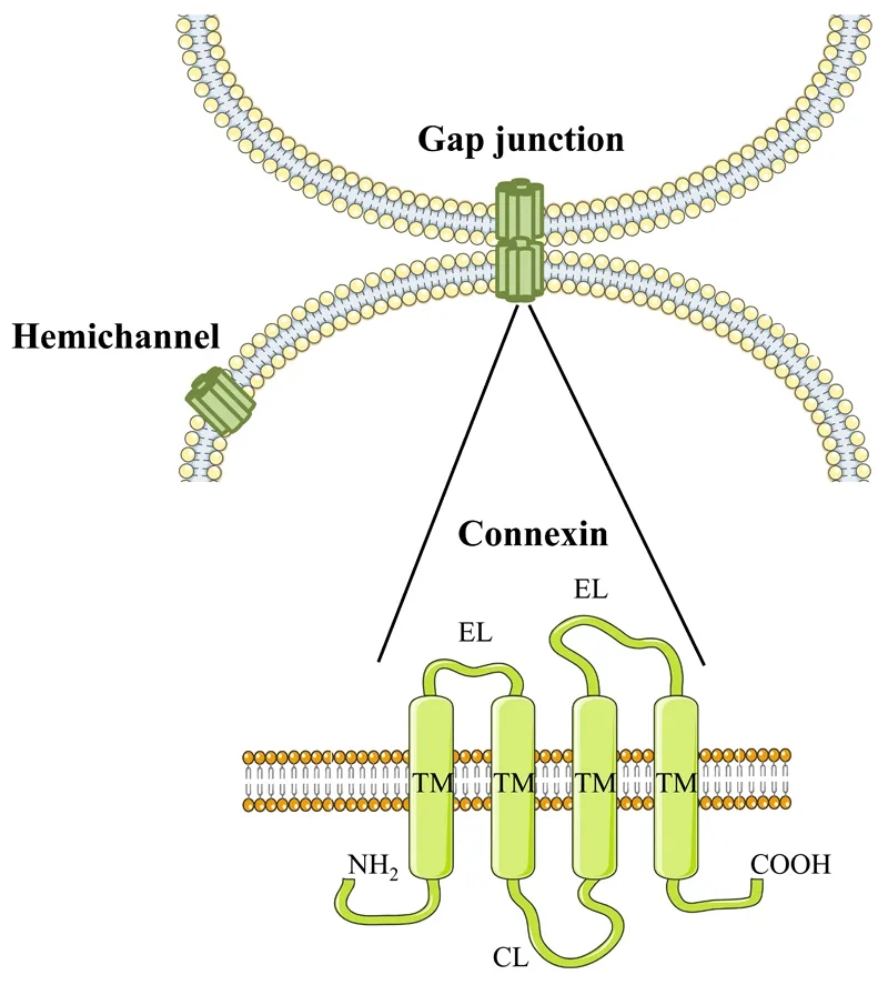 縫隙連接(Gap junctions)又稱間隙連接,是一種重要的跨細胞通道,可以介導分子量小于約1 kD的小分子(如cAMP,IP3,Glucose等第二信使)或離子(氫離子、鈣離子、鉀離子等)在細胞間的擴散。這種通道廣泛地存在于包括脊椎動物和無脊椎動物的各類組織和器官中,介導細胞間的化學和電學信號傳遞,從而調控發育、維持穩態,保證生物體各個系統的正常工作。縫隙連接功能的缺陷與許多疾病有關,包括心肌梗死、聽力喪失和低髓鞘性疾病等。