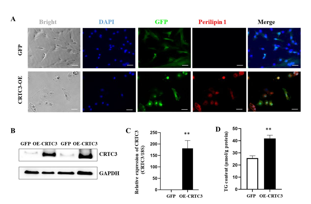 CRTC3過表達能促進豬脂肪細胞中的脂質積累,并可以通過上調Ca2+-cAMP信號通路促進成脂分化,該研究為揭示CRTC3在調節豬脂肪代謝中的作用提供了獨到見解,并為調節脂肪沉積和改善動物肉質提供新的思路。