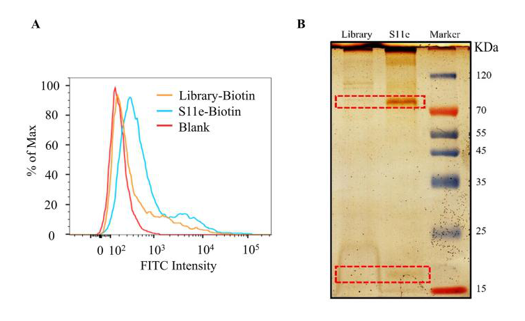 為研究S11e的生物學功能,作者進行了細胞毒性實驗。分別用S11e和Library(隨機文庫)處理HT1080細胞后,細胞活力分別為49.08%和93.42%,說明S11e而不是Library對HT1080細胞具有細胞毒性作用。綜上所述,S11e可有效誘導HT1080細胞凋亡,提示S11e對腫瘤細胞具有潛在的治療作用。