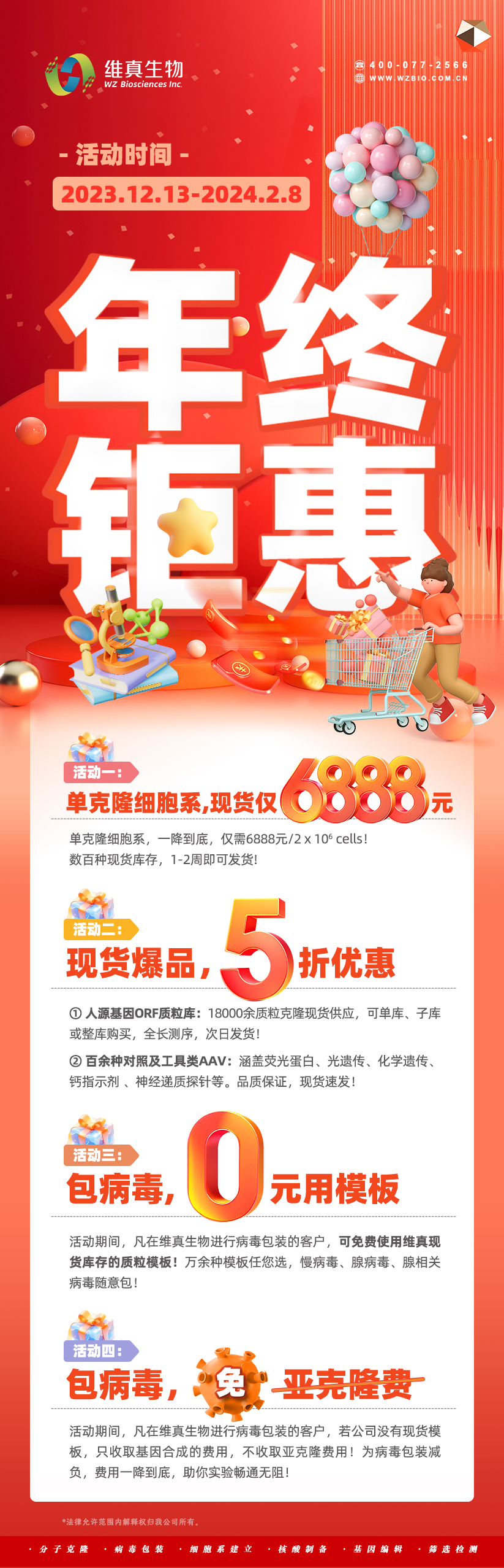 年終鉅惠|拼手速!單克隆細胞系低至6888!