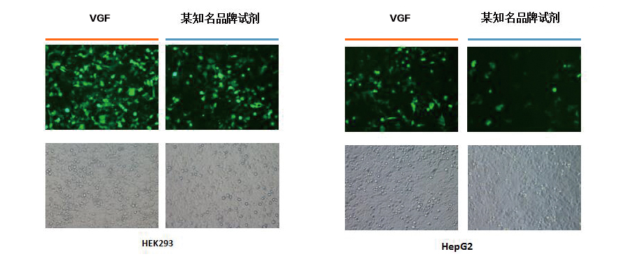 大部分細胞系所使用的DNA(μg)與VGF(μg)的比值為1:3或 1:4,轉染狀態良好的細胞可獲得高轉染效率、高表達水平和低細胞毒性。下面以24孔板培養的哺乳動物細胞為例: