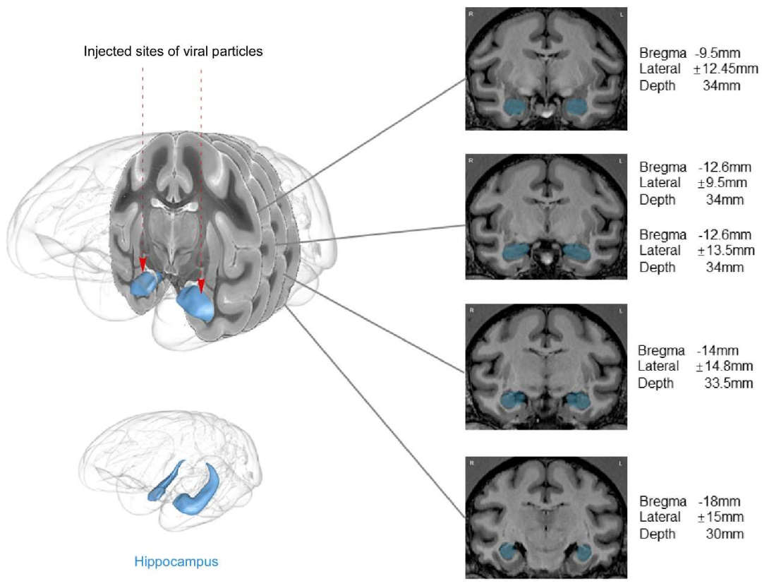 注射方式 | 腦立體定位注射,31-gauge漢密爾頓注射器, rate of 500 nL/min |