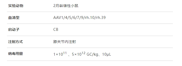 不同AAV血清(qing)型在(zai)小鼠(shu)軟骨組織中的轉(zhuan)導效率(lv)比(bi)較