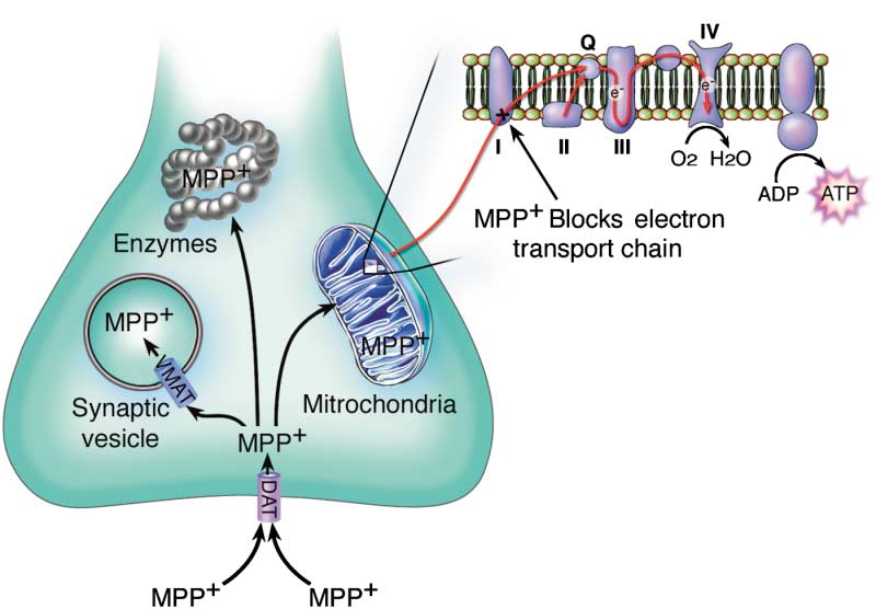 圖1. MPTP代謝及作用機制示意圖(Dauer W et al., Neuron. 2003)