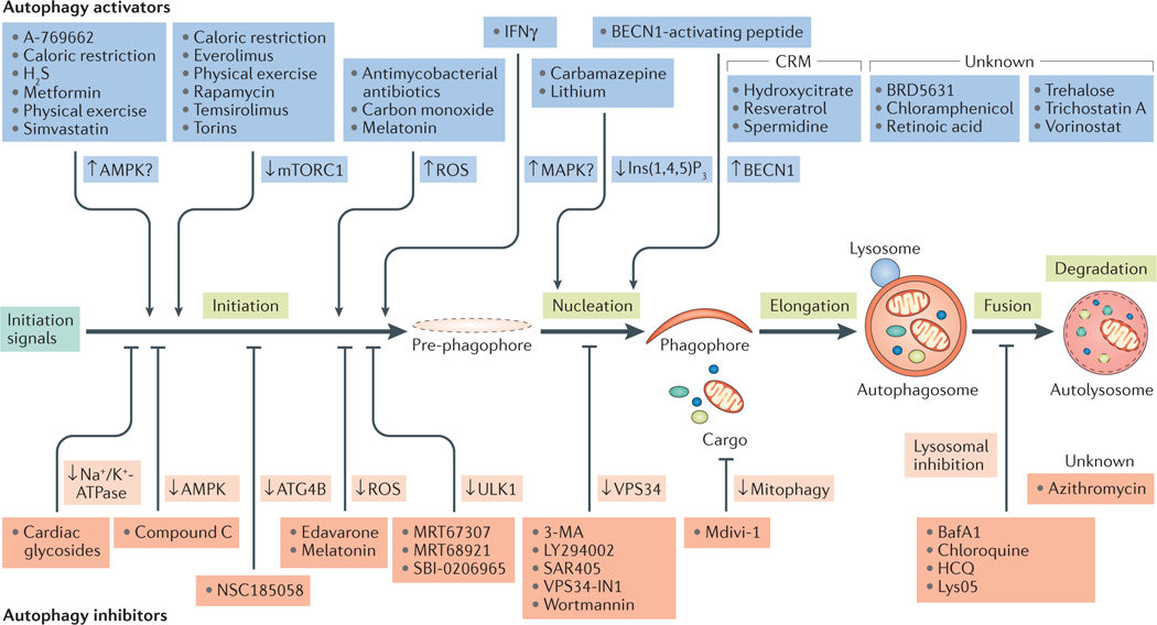 Rapamycin:雷帕霉素,mTOR抑制劑(最常用); | Chloroquine:氯奎寧,溶酶體抑制劑; |