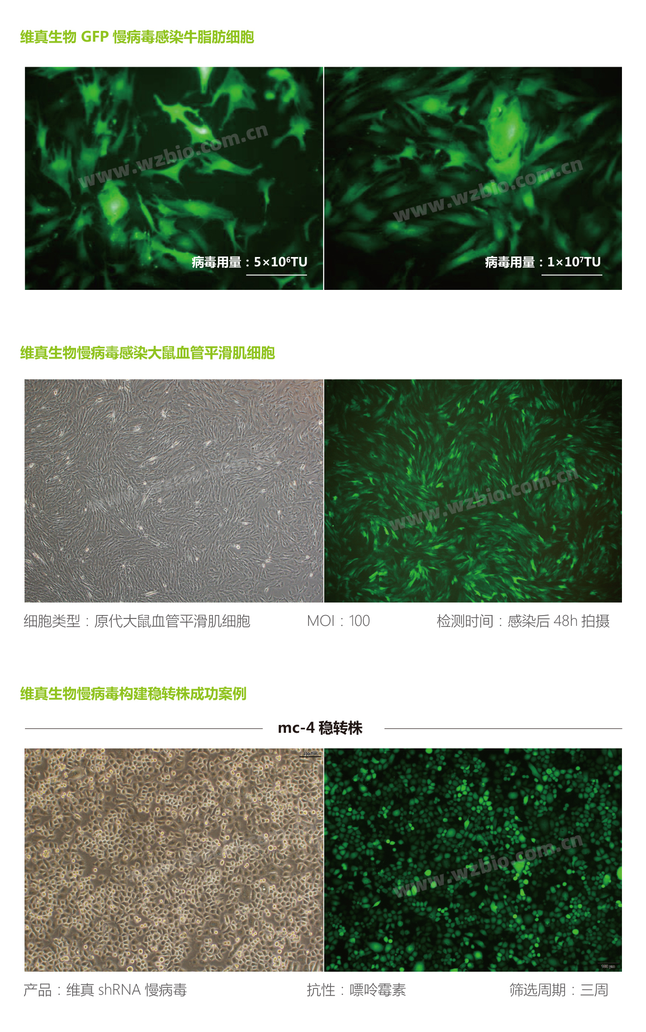 2. 慢病毒能將外源基因有效地整合入宿主染色體上,介導目的基因穩定、長期的表達。因此,可以利用慢病毒建立穩定細胞株。