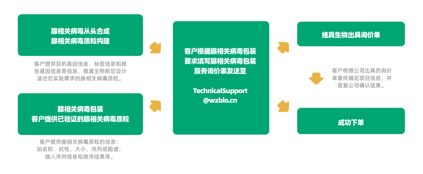 根據客戶的個性化實驗需求,維真生物提供優質的腺相關病毒包裝服務。下面是具體服務內容(具體規格、費用、貨期請詳詢客服):