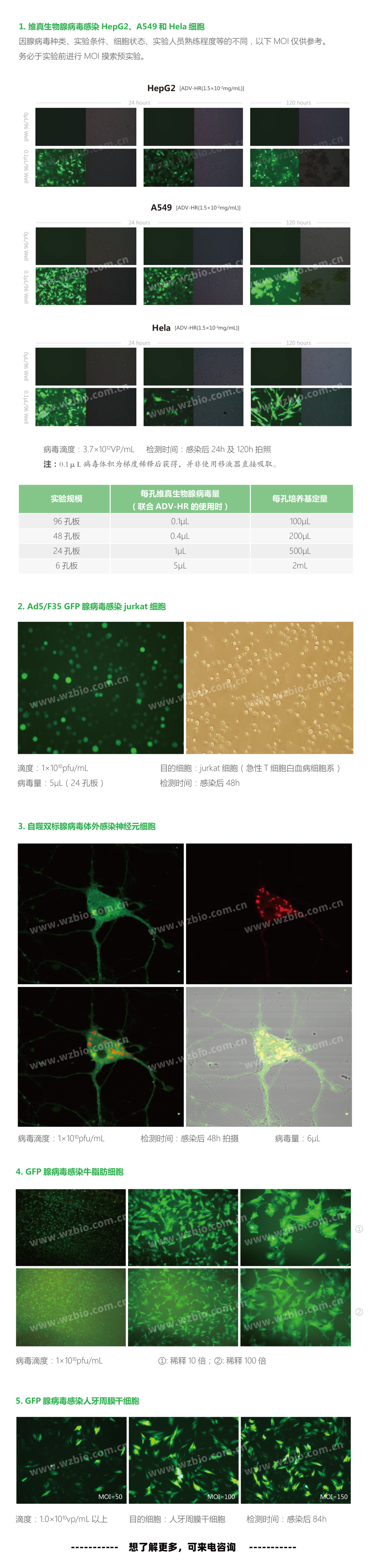WZ050003 | 大包裝、純化 | 滴度≥1×10E11 pfu/ml;體積1ml | 詢價 | 4-5周 |
