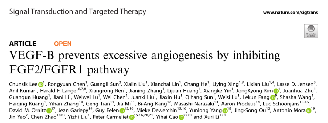 IF 39.3|李旭日/曹義海/趙晨研究團隊揭示VEGF-B防止血管過度生成的潛在機制!