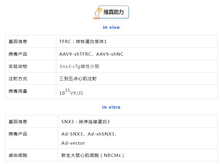 最后,研究人員探討了SNX3在dox誘導的心肌病中促進鐵死亡的潛在機制。TFRC被認為是鐵穩態的關鍵內源性調節劑,co-IP實驗證實了SNX3在NRCM中與TFRC相互作用,激光掃描共聚焦分析發現TFRC蛋白定位于溶酶體中,過表達SNX3顯著增加了PM中TFRC的蛋白水平,敲低SNX3則降低PM中TFRC的含量,表明SNX3將TFRC從溶酶體轉運到PM中。將攜帶sh-TFRC或sh-NC的AAV9載體(維真助力)通過心肌內注射遞送至Snx3-cTg小鼠的左心室,在TFRC沉默后,SNX3過表達誘導的心臟鐵積累和MDA含量被顯著抑制,小鼠的心肌功能也得到了改善。體外實驗進一步證實了SNX3通過特定的TFRC依賴性鐵攝取途徑加劇鐵死亡。綜上所述,這些數據表明,SNX3通過調節dox誘導的心肌病中TFRC的轉運來介導鐵死亡,抑制或誘導TFRC分別可以改善或加劇SNX3誘導的鐵死亡。