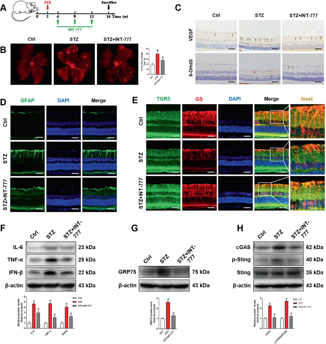 圖3. TGR5激活可阻斷cGAS-STING介導的炎癥反應,減輕DR大鼠視網膜損傷