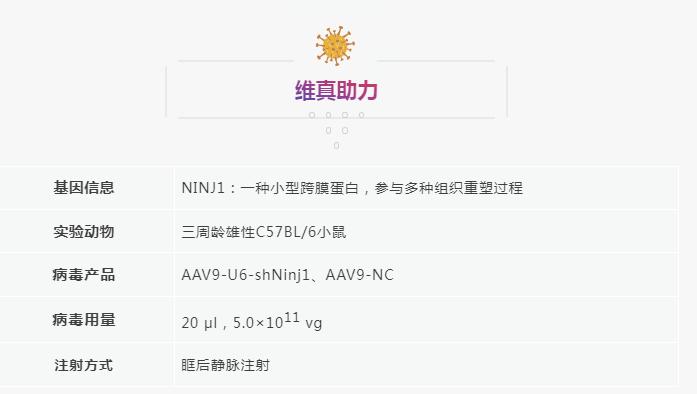 為進一(yi)步(bu)說明NINJ1和(he)TAD之間的(de)(de)關系,作(zuo)(zuo)者將(jiang)AAV9-shNinj1或AAV9-NC注入3周(zhou)齡雄性(xing)C57BL/6J小鼠(shu)眶后靜(jing)脈,并在(zai)(zai)AAV9注射后第7天,構建了BAPN誘導的(de)(de)TAD小鼠(shu)模型(xing)。檢(jian)測結果(guo)(guo)表明,Ninj1-shRNA可(ke)顯著(zhu)降(jiang)低胸主(zhu)動脈平均直(zhi)徑、TAA/TAD發生率(lv)及死亡率(lv);染色結果(guo)(guo)顯示,Ninj1-shRNA顯著(zhu)降(jiang)低TAD模型(xing)主(zhu)動脈壁的(de)(de)纖維化水(shui)平、彈(dan)性(xing)纖維斷裂和(he)變性(xing)。不(bu)僅如此(ci),Ninj1-shRNA還明顯減輕了T細(xi)胞和(he)巨噬細(xi)胞在(zai)(zai)主(zhu)動脈內的(de)(de)浸潤,減少T細(xi)胞和(he)CD31+α-SMA+數量(liang)。以上結果(guo)(guo)提示,敲低NINJ1可(ke)能在(zai)(zai)TAD中炎癥(zheng)浸潤、細(xi)胞死亡和(he)EndMT相(xiang)關的(de)(de)血管重(zhong)構中發揮(hui)重(zhong)要(yao)抑(yi)制作(zuo)(zuo)用。