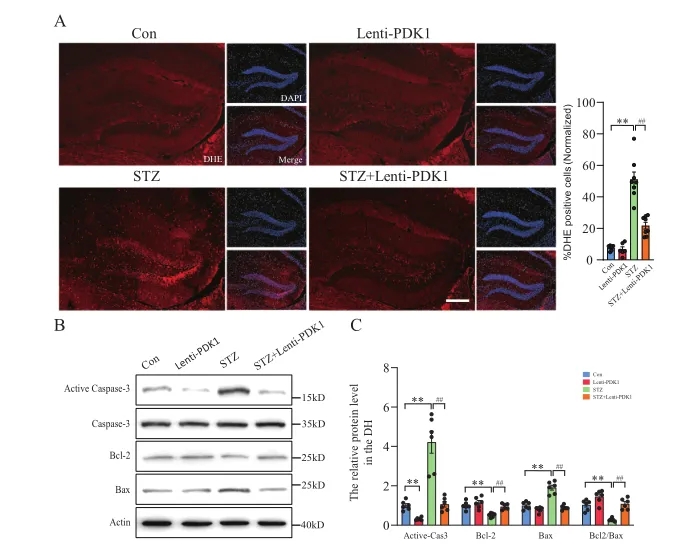 圖2. PDK1減少STZ誘導的小鼠海馬中ROS的產生和神經元凋亡