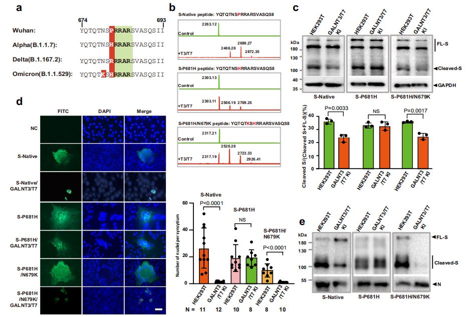 圖1. GalNAc-T3和T7通過在T678和S686位點特異性糖基化抑制Furin對S蛋白的加工
