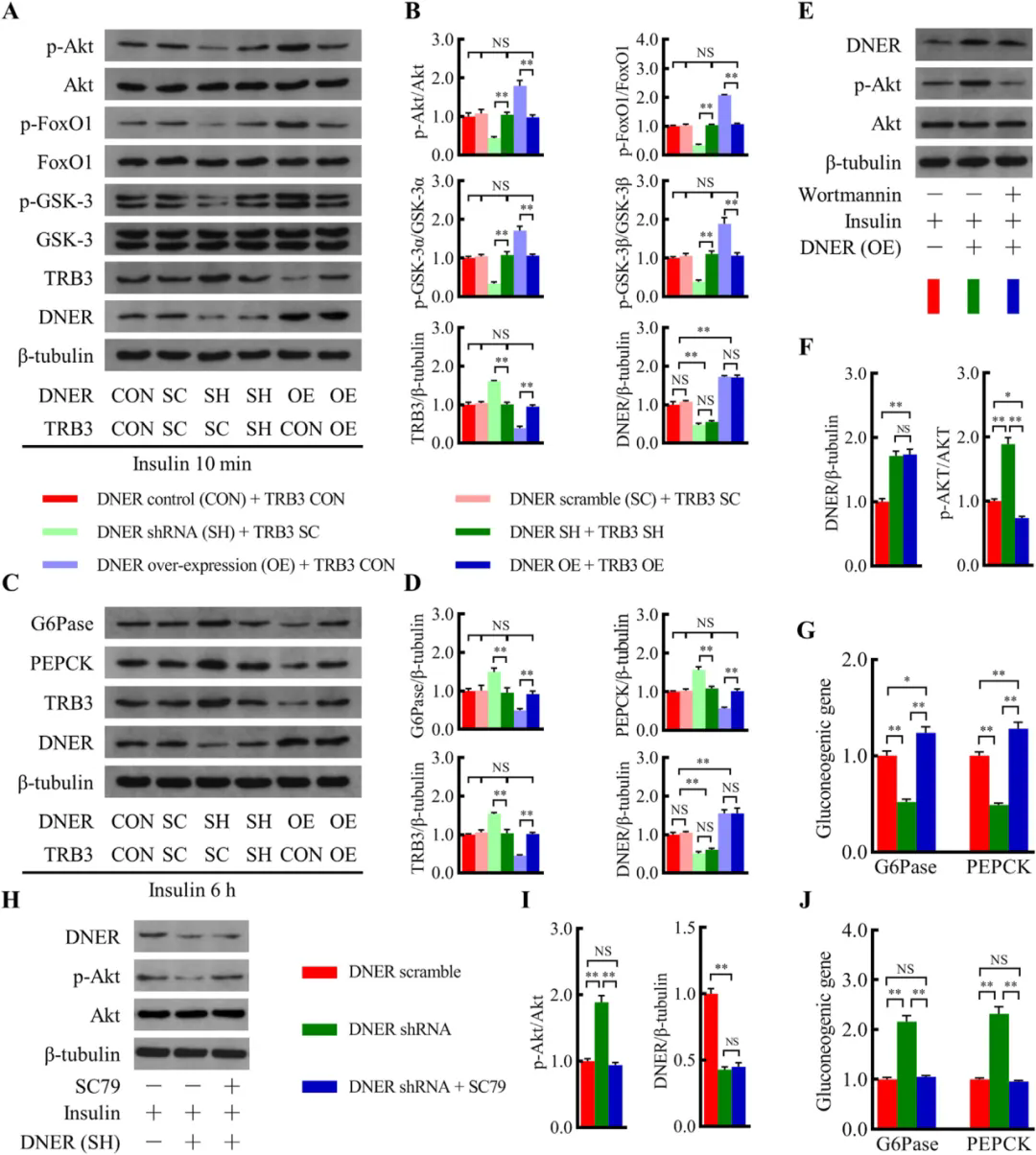 2、DNER通過TRB3-Akt信號通路負調控肝糖異生