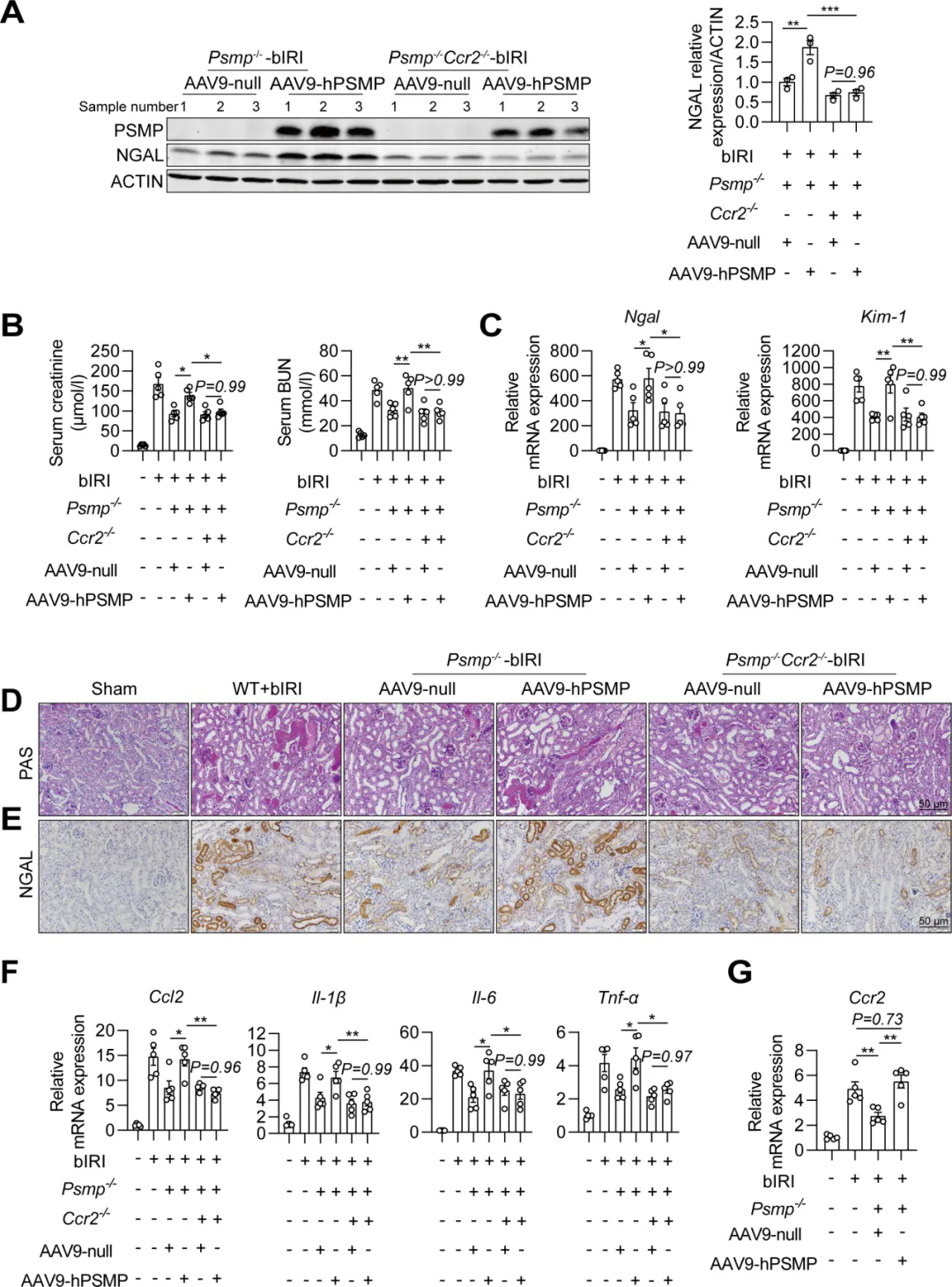1、AAV9-hPSMP可恢復腎PSMP表達并以CCR2依賴的方式促進AKI