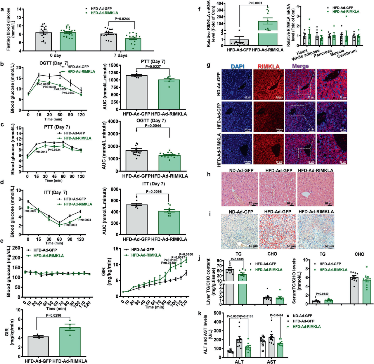 1、肝臟RIMKLA過表達可改善肥胖小鼠的高血糖和脂肪變性