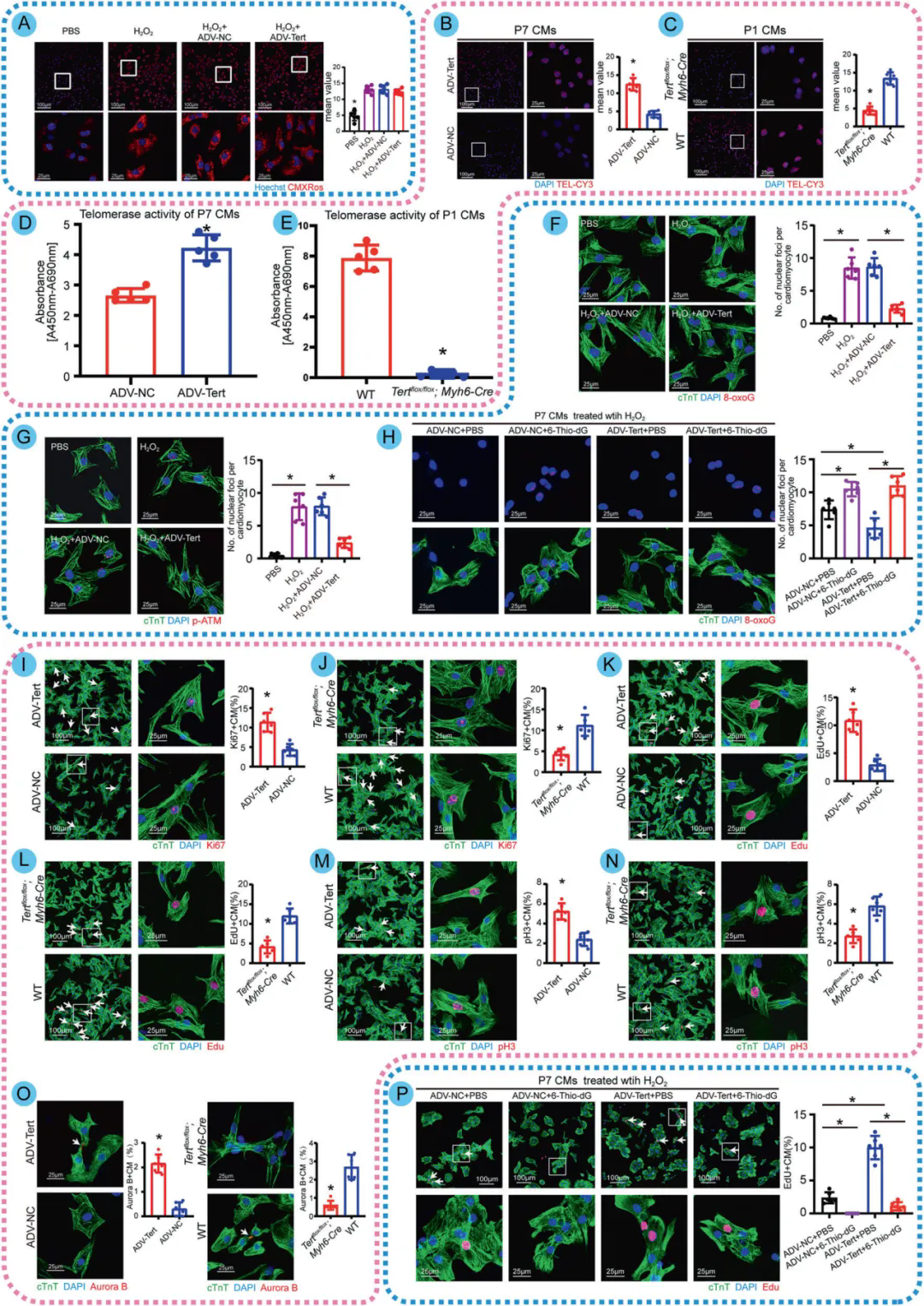 Tert過表達通過延長端粒來減少端粒DNA損傷,從而促進體外CM增殖