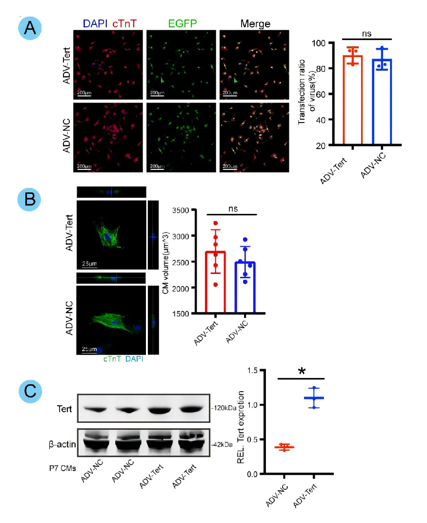 ADV-Tert在小鼠心肌細胞中成功過表達