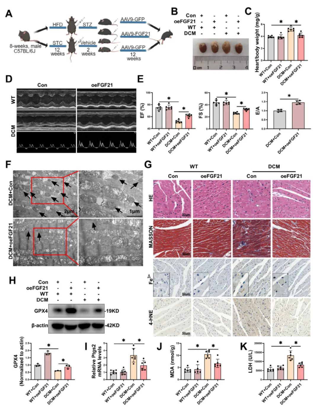 FGF21過表達可通過鐵死亡途徑減輕小鼠DCM的心臟損傷