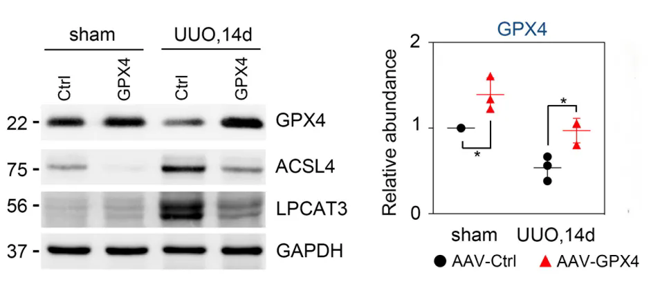 GPX4過表達的小鼠因鐵死亡缺陷而減輕UUO誘導的腎間質纖維化