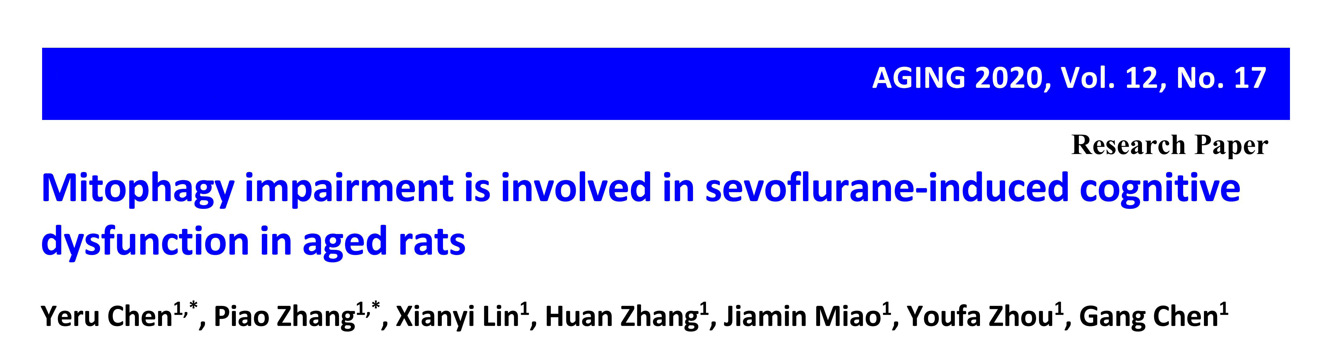 術后認(ren)知(zhi)(zhi)功能(neng)障礙(Post operative cognitive dysfunction,POCD)是老(lao)(lao)(lao)年(nian)人手術后出現的(de)一種中(zhong)樞(shu)神(shen)經(jing)系(xi)統并發癥(zheng),表現為(wei)術后記(ji)憶(yi)力(li)和集中(zhong)力(li)下(xia)降、精神(shen)錯亂、焦(jiao)慮等。高(gao)齡是發生(sheng)POCD的(de)主要危險因(yin)素(su)之(zhi)一,越來(lai)越多的(de)證據表明麻醉會引起POCD老(lao)(lao)(lao)年(nian)患者的(de)神(shen)經(jing)毒性和神(shen)經(jing)認(ren)知(zhi)(zhi)能(neng)力(li)下(xia)降。對POCD老(lao)(lao)(lao)年(nian)大(da)鼠模(mo)型的(de)研(yan)(yan)究表明,七氟醚(Sevoflurane,一種麻醉藥物(wu))可(ke)誘(you)導神(shen)經(jing)元凋亡(wang)導致學習和記(ji)憶(yi)缺失;此(ci)外(wai),線粒(li)(li)體自噬(shi)功能(neng)障礙也被認(ren)為(wei)與(yu)POCD相關。作(zuo)者先前(qian)的(de)研(yan)(yan)究已表明,自噬(shi)功能(neng)障礙與(yu)七氟醚誘(you)導的(de)老(lao)(lao)(lao)年(nian)大(da)鼠POCD有關。然而,尚不(bu)清楚線粒(li)(li)體自噬(shi)受損是否與(yu)老(lao)(lao)(lao)年(nian)大(da)鼠POCD的(de)發病機制相關。