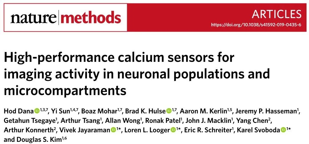 自2001年GCaMP1問世以來,科學家們通過基于結構的突變和基于神經元的篩選方法不斷優化GCaMP的親和性、信噪比、動力學和動態范圍等,先后成功開發過GCaMP2, GCaMP3, GCaMP5和GCaMP6,以滿足研究者不同的成像實驗。其中,GCaMP6系列鈣指示劑憑借其獨特的優勢曾經一段時間獲得科研工作者的青睞。它可以檢測單個動作電位,也可以檢測大量神經元活動和神經亞細胞(如樹突棘和軸突)活動。但是,GCaMP6只有在適宜條件下才能檢測單個動作電位,若處于具挑戰性的條件下,GCaMP6的檢測準確性就會下降。這就需要新一代GCaMP鈣指示劑——jGCaMP7系列來解決,其研究成果科學家們已于2019年7月發表在Nature Methods上。