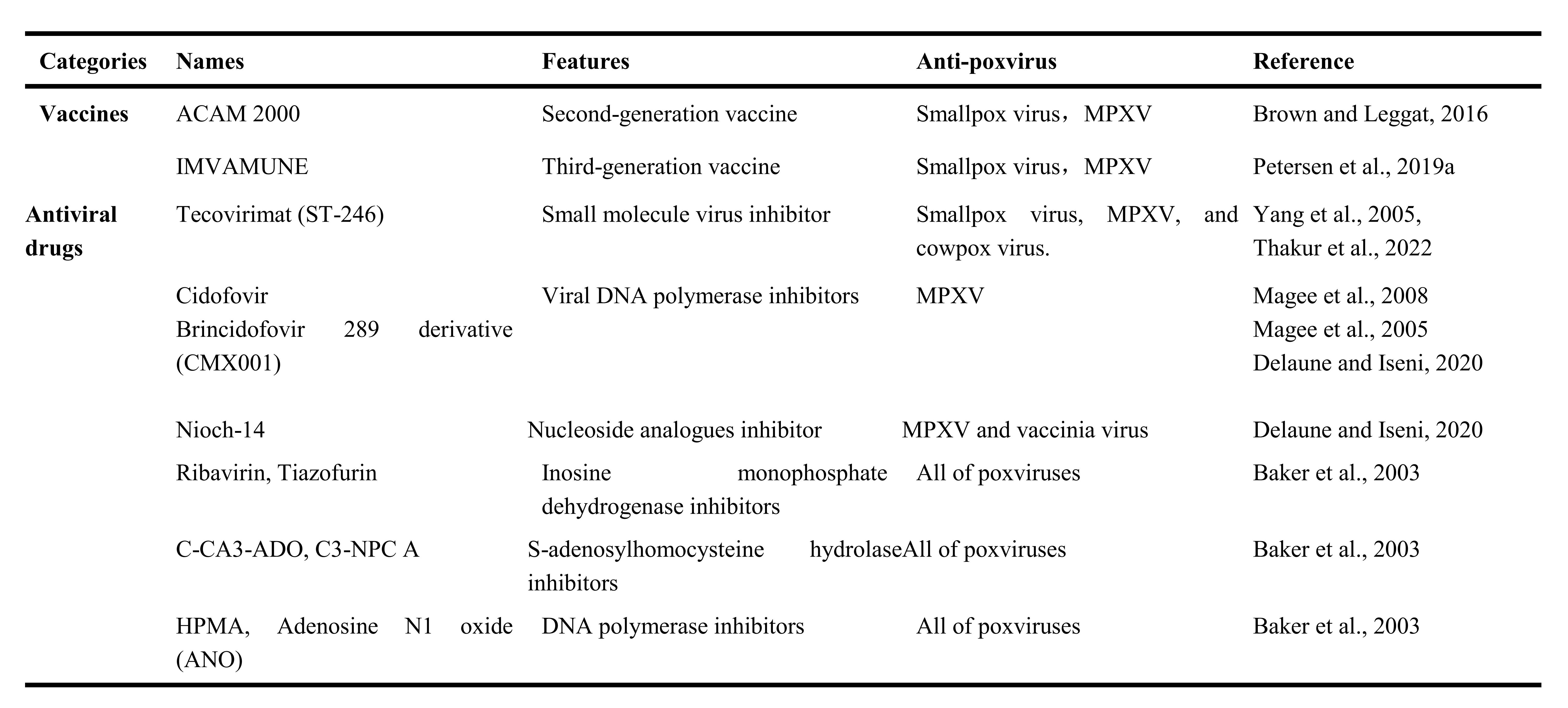 用于預防和治療人類痘病毒的候選疫苗和抗病毒藥物 (Gong Q et al. Virologica Sinica. 2022)