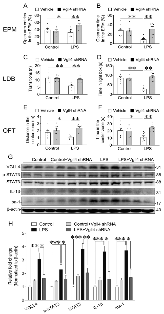 圖7. VGLL4敲低對LPS誘導的焦慮樣行為和海馬中相關蛋白表達水平的影響