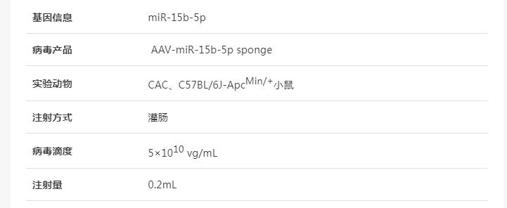 研究人員利用腺相關(guan)病毒(AAV-miR-15b-5p sponge)載體感染(ran)CAC和APCMin/+小(xiao)鼠結腸組(zu)織(zhi),抑(yi)制(zhi)miR-15b-5p的(de)(de)(de)表(biao)達(da)。作者觀察發現在(zai)CAC和APCMin/+結腸癌小(xiao)鼠模型中(zhong),miR-15b-5p表(biao)達(da)的(de)(de)(de)阻斷明顯(xian)促進(jin)了腫瘤的(de)(de)(de)發生(sheng),提高了PD-L1表(biao)達(da),同時顯(xian)著(zhu)減(jian)少了CD8+細胞數量,說(shuo)明miR-15b-5p通過(guo)靶向PD-L1抑(yi)制(zhi)腫瘤的(de)(de)(de)發生(sheng)。