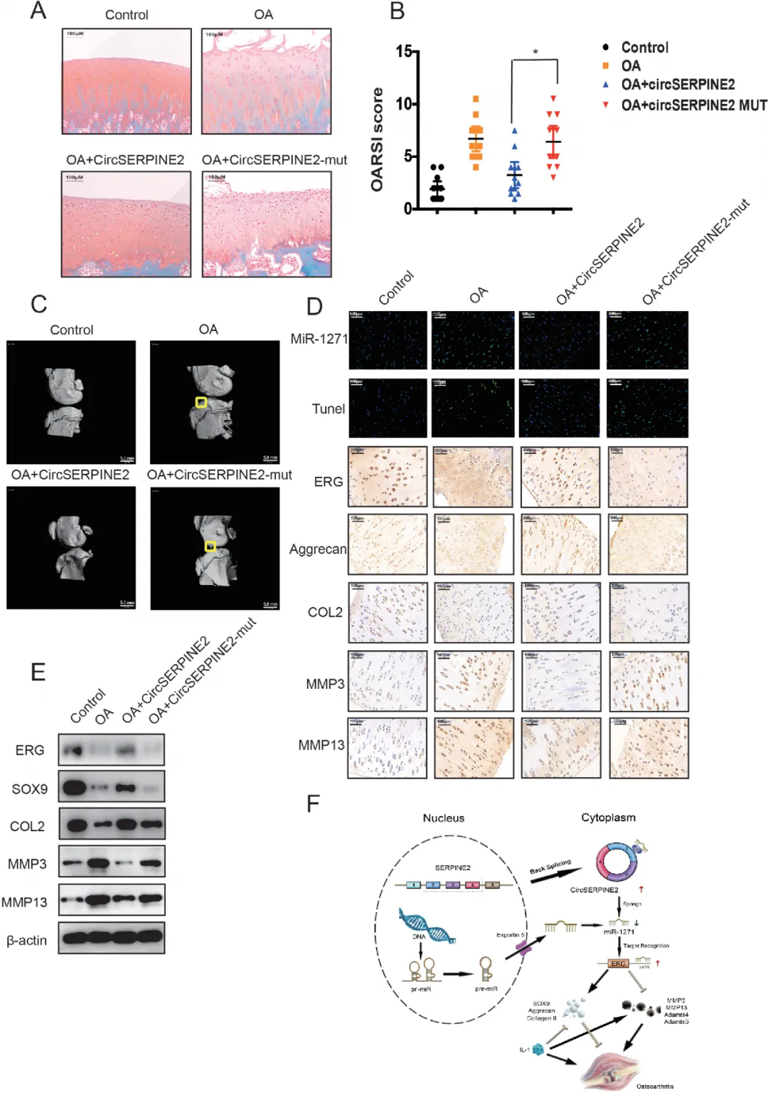 CircSERPINE2過表(biao)達(da)可緩解OA兔的癥狀