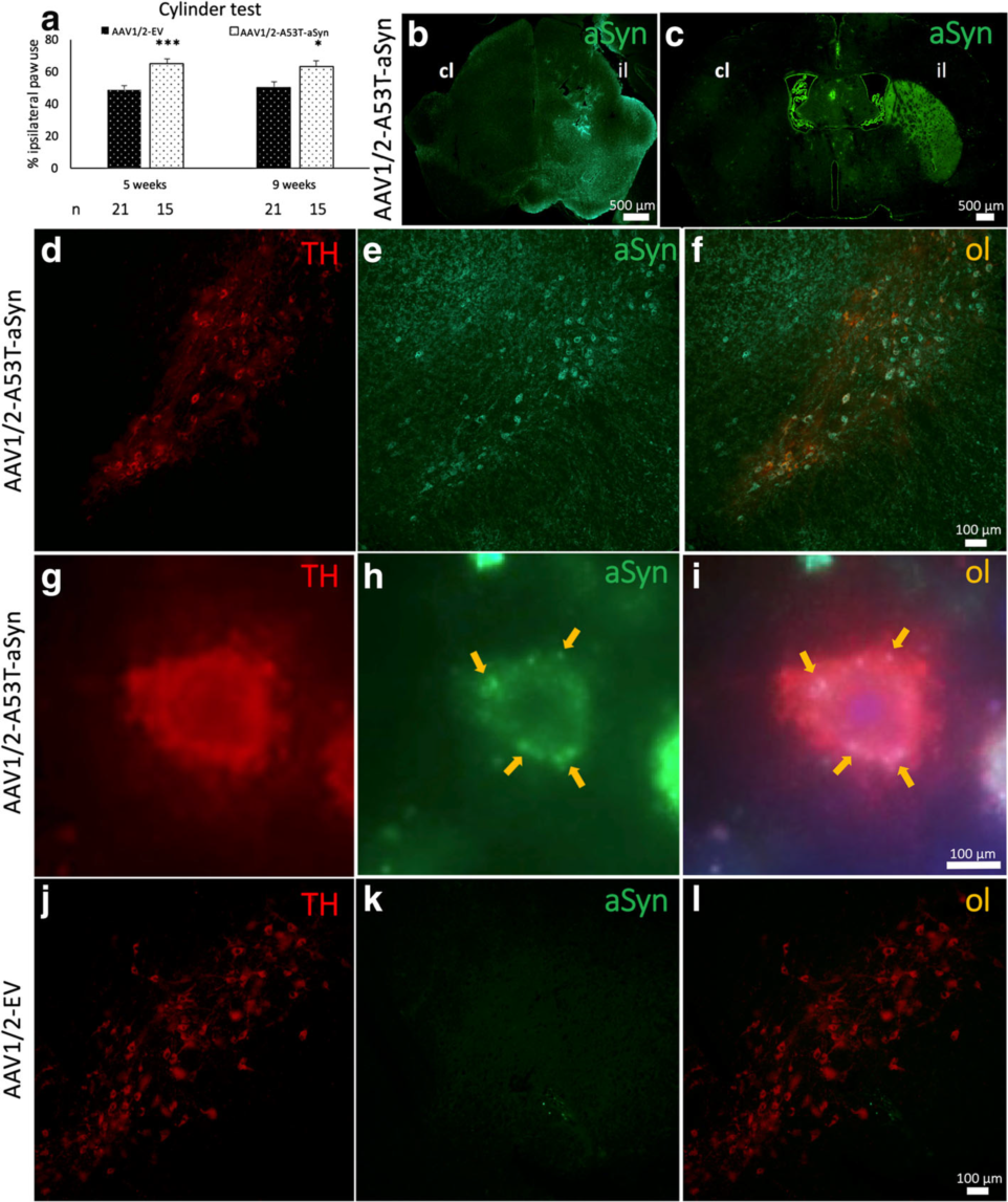 圖5. AAV1/2-A53T-αSyn導致小鼠出現與PD患者類似的路易樣病理
