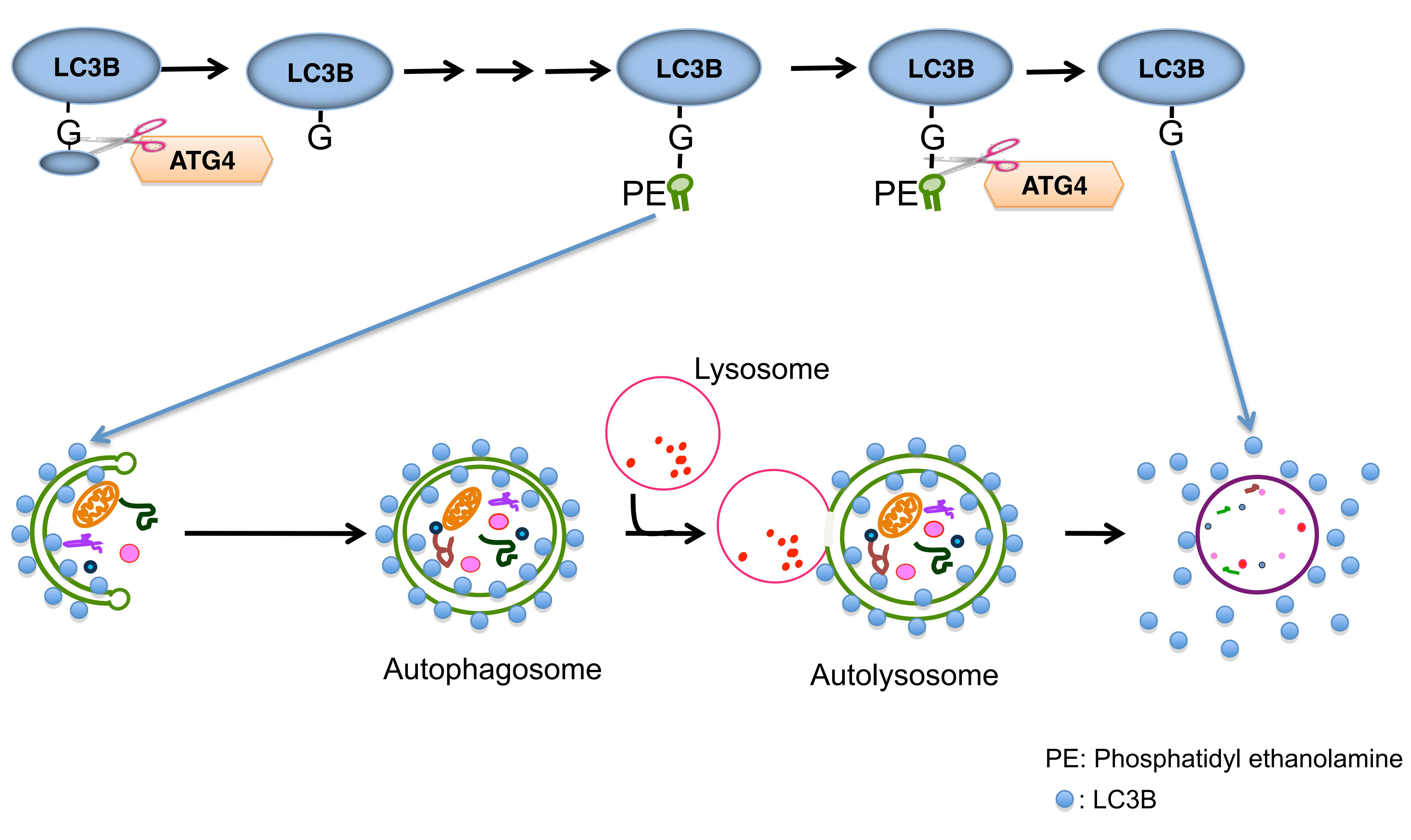 LC3(light chain 3)全稱MAP1LC3 (microtubule-associated proteins light chain 3),貫穿整個細胞自噬過程,是目前公認的細胞自噬標記物。哺乳動物中的LC3與酵母中的細胞自噬相關蛋白Apg8/Aut7/Atg8具有同源性。哺乳動物的LC3可分為三種:LC3A、LC3B和LC3C。其中,LC3B應用最為廣泛。