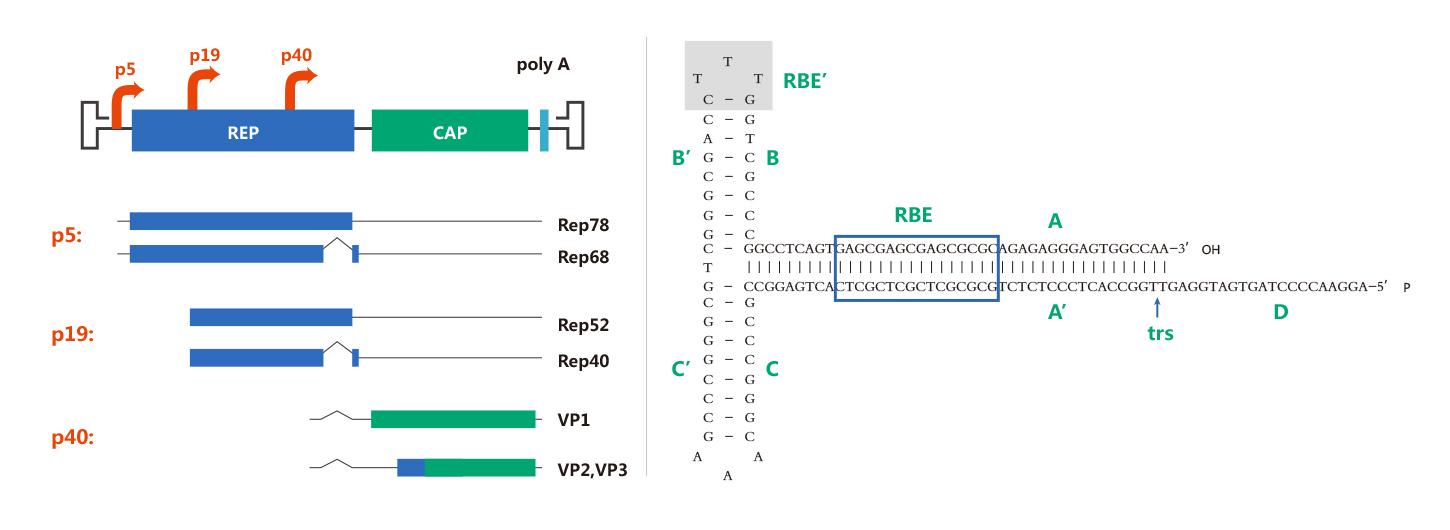 重組AAV(rAAV)是人工改造的AAV,沒有編碼AAV病毒復制和結構蛋白的rep和cap基因。rAAV中與復制和包裝相關的rep和cap 基因被替換為ITRs間的基因表達框,這使rAAV具有約4.7 kb的包裝容量。